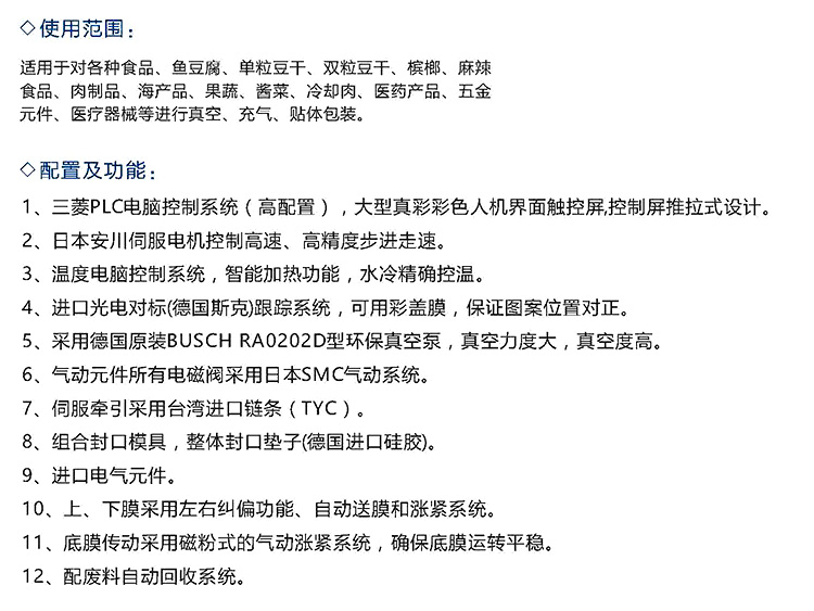 溫州瑞馳包裝設(shè)備有限公司是一家集研發(fā)、制造、銷售全自動真空包裝機(jī)于一體的科技型企業(yè),公司全力打造的瑞馳真空包裝機(jī)在同行業(yè)中享有較高的榮譽(yù)和信譽(yù)。公司研發(fā)生產(chǎn)的RC-420、RC-520等系列的全自動雙面拉伸膜真空包裝機(jī)全自動連續(xù)拉伸膜真空包裝機(jī)、全自動連續(xù)拉伸硬盒真空充氣包裝機(jī)、辣條棒全自動生產(chǎn)線等系列。并根據(jù)客戶需求配置自動上料系統(tǒng)、輸送系統(tǒng),提升系統(tǒng)等形成成套的包裝流水線等系列產(chǎn)品。借助技術(shù)優(yōu)勢、憑借可靠的質(zhì)量、穩(wěn)定的性能和周到的售后服務(wù),使瑞馳產(chǎn)品遍布**各地,還遠(yuǎn)銷全球多個國家和地區(qū)。
